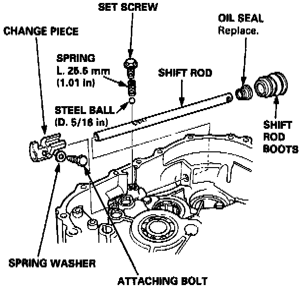 4. Remove the shift rod, then remove the change piece.