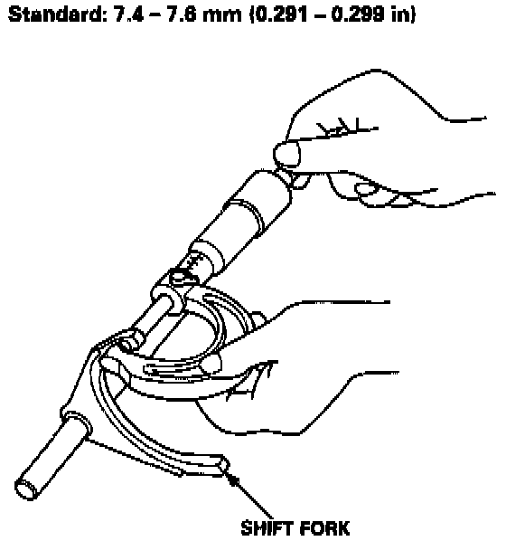2. If the clearance is more than the service limit, measure the thickness of the shift fork fingers.