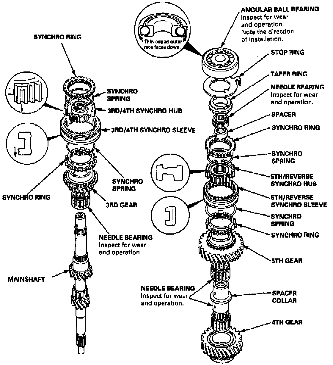 - Assemble the 3rd/4th synchro hub and sleeve together before installing them on the mainshaft.