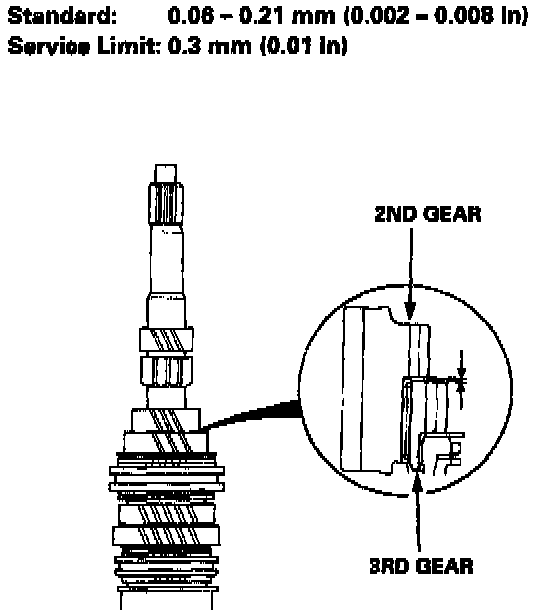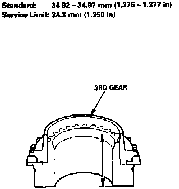 - If the thickness of 3rd gear is less than the service limit, replace 3rd gear with a new one.