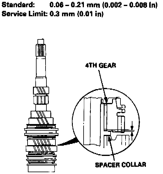 3. Measure the clearance between 4th gear and the spacer collar.