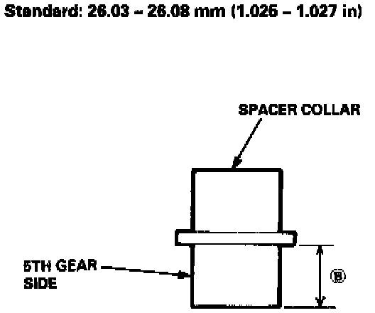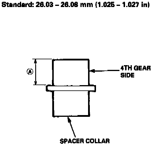 5. If distance (A) is not within the standard, replace the spacer collar with a new one. If distance (A) is within the standard, measure the thickness of 4th gear.