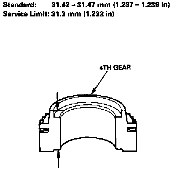 - If the thickness of 4th gear is less than the service limit, replace 4th gear with a new one.