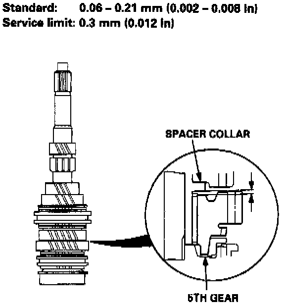 6. Measure the clearance between 5th gear and the spacer collar.