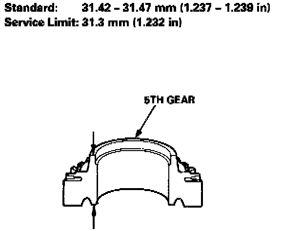 - If the thickness of 5th gear is less than the service limit, replace 5th gear with a new one.