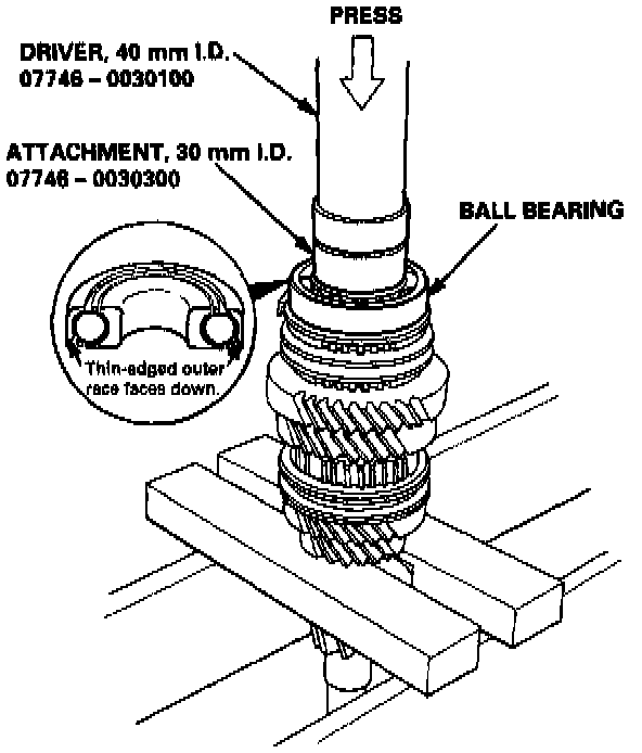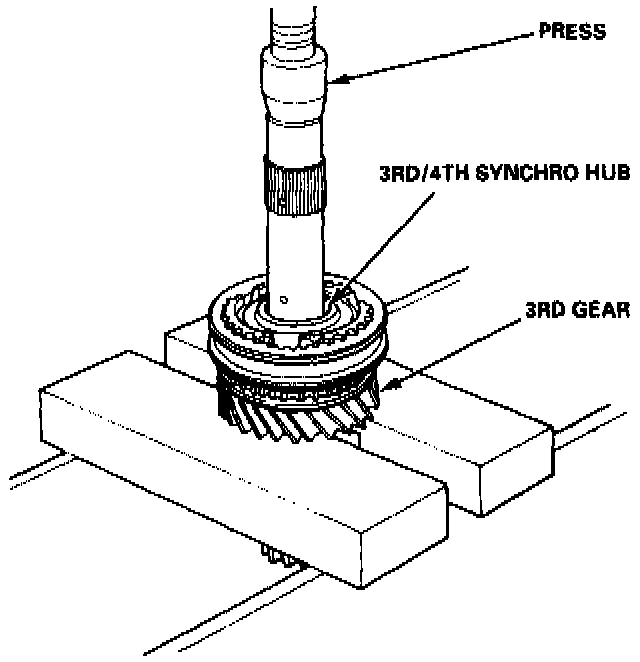 - When installing the 3rd/4th and the 5th synchro hubs, support the mainshaft on steel blocks, and install the synchro hubs using a press.
