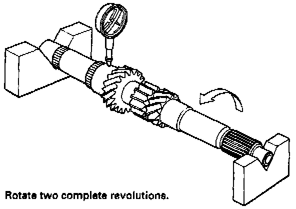 2. Inspect for runout. If the runout is more than the service limit, replace the mainshaft with a new one.