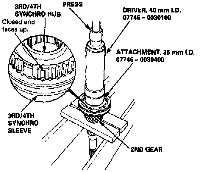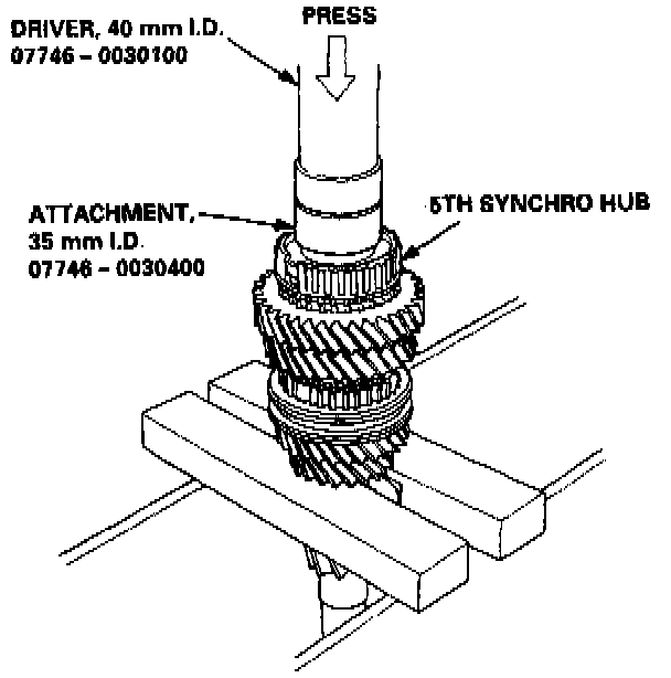 - The 3rd/4th and the 5th synchro hubs are installed with a press.