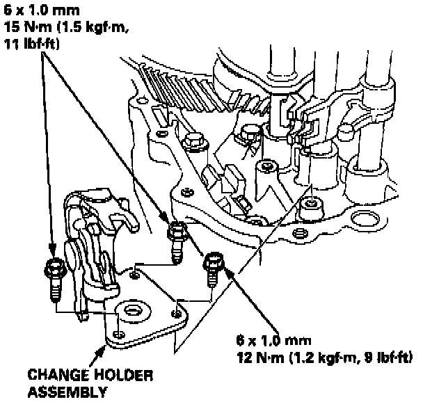 24. Install the clutch line bracket, transmission hanger A and back-up light switch clamp, then tighten the transmission housing attaching bolts in the numbered sequence shown.