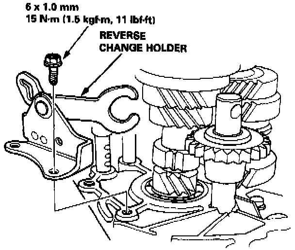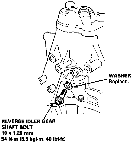 14. Install the reverse idler gear and the reverse idler gearshaft.