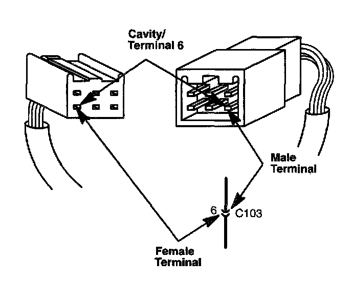 The connector cavity number is listed next to each terminal on the circuit schematic. The cavity / terminal shown is # 6.