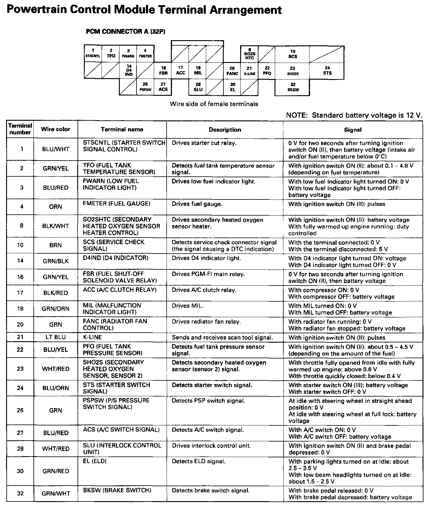 Powertrain Control Module Terminal Arrangement Part 2:
