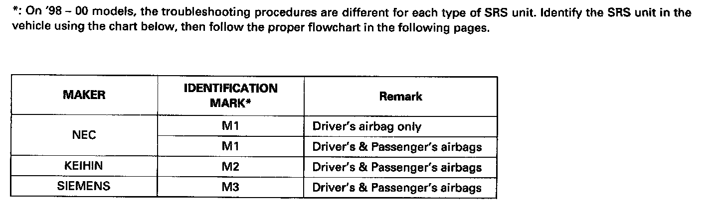 98 - 00 Model SRS Units: