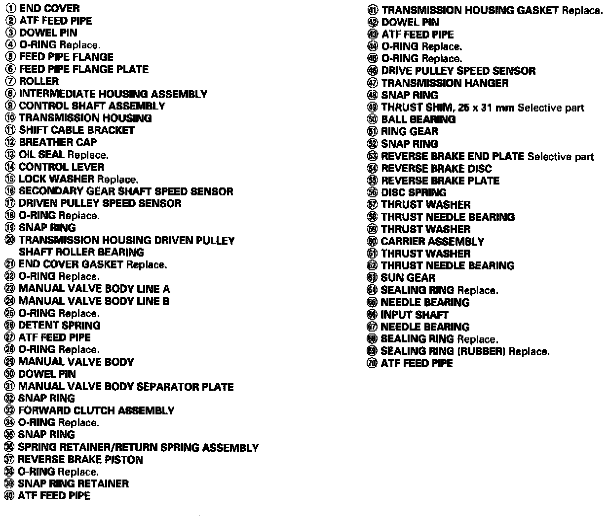 - Lubricate all parts with Continuously Variable Transmission (CVT) Fluid before reassembly.