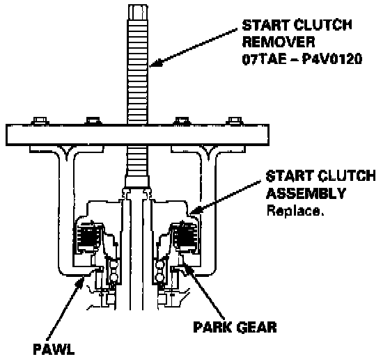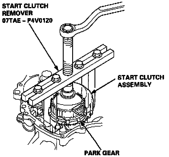 11. Remove the start clutch and the secondary drive gear assembly using the special tool, then remove the secondary gear shaft.