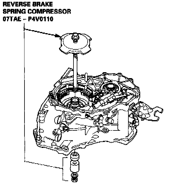 10. Install the special tool to remove the snap ring securing the reverse brake return spring retainer as shown.