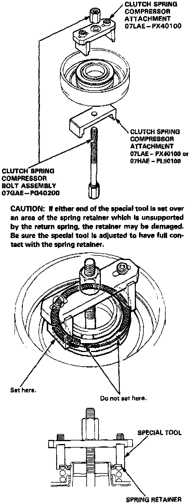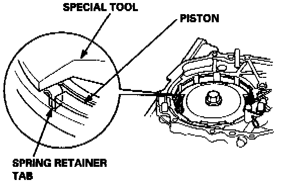5. Remove the snap ring. Then remove the special tools, spring retainer, and return spring.
