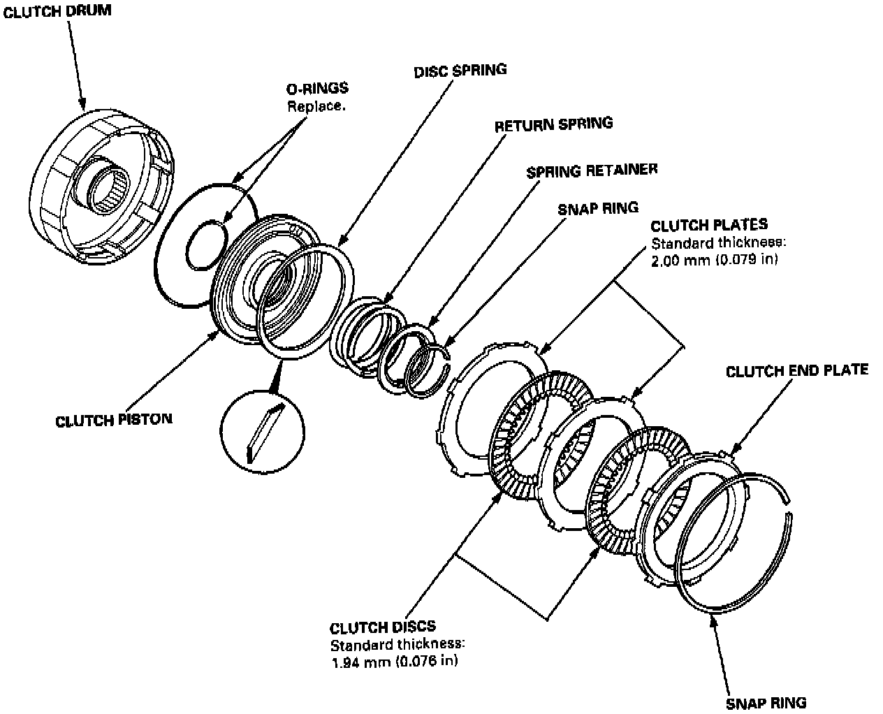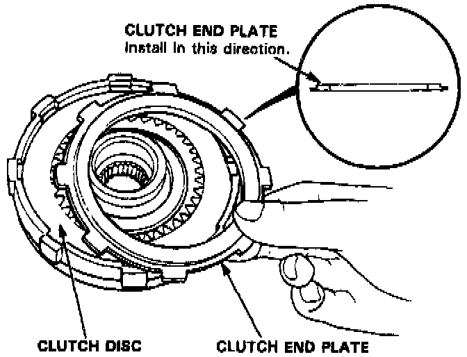 1. Remove the snap ring, then remove the clutch end plate, clutch discs, and plates.