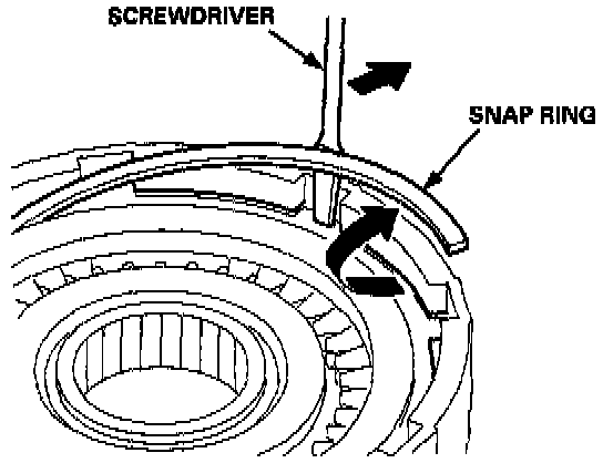 7. Remove the snap ring securing the forward clutch, and remove the snap ring securing the forward clutch end plate, then remove the forward clutch end plate.