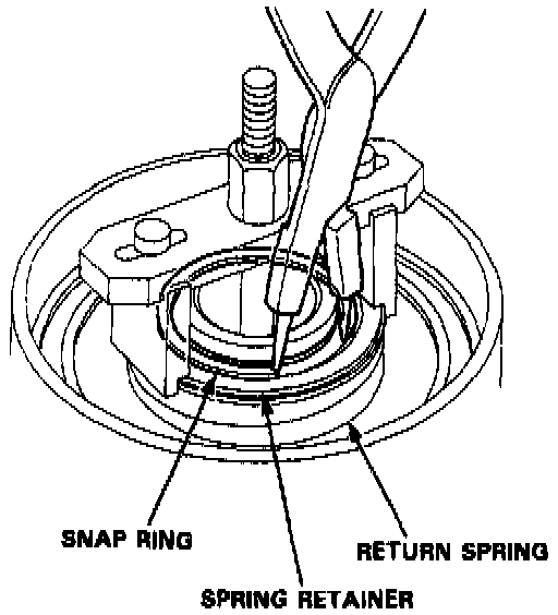 4. Install the return spring and spring retainer, and position the snap ring on the retainer.