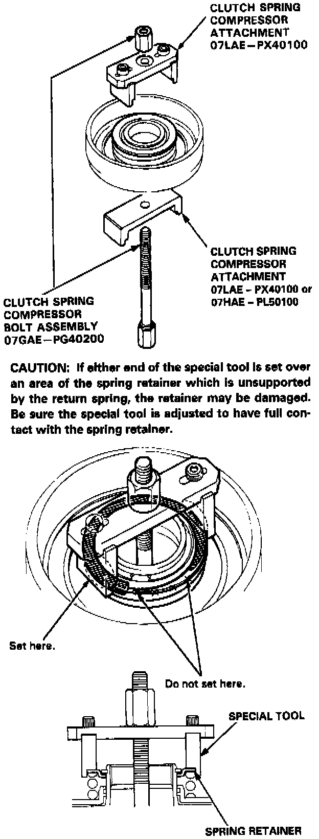12. Remove the special tool, then remove the spring retainer/return spring assembly.