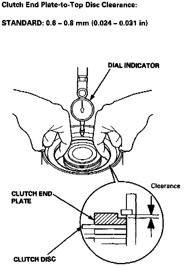 16. After replacing the clutch end plate, make sure that the clearance is within tolerance.