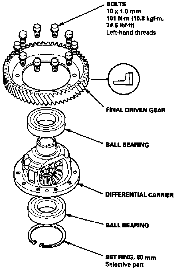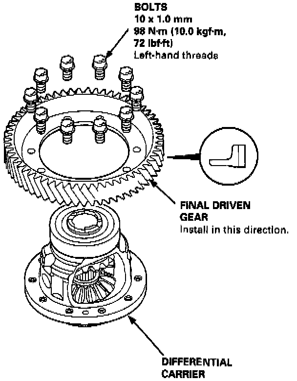 2. Install the final driven gear with its chamfered side on the inner bore facing the differential carrier.