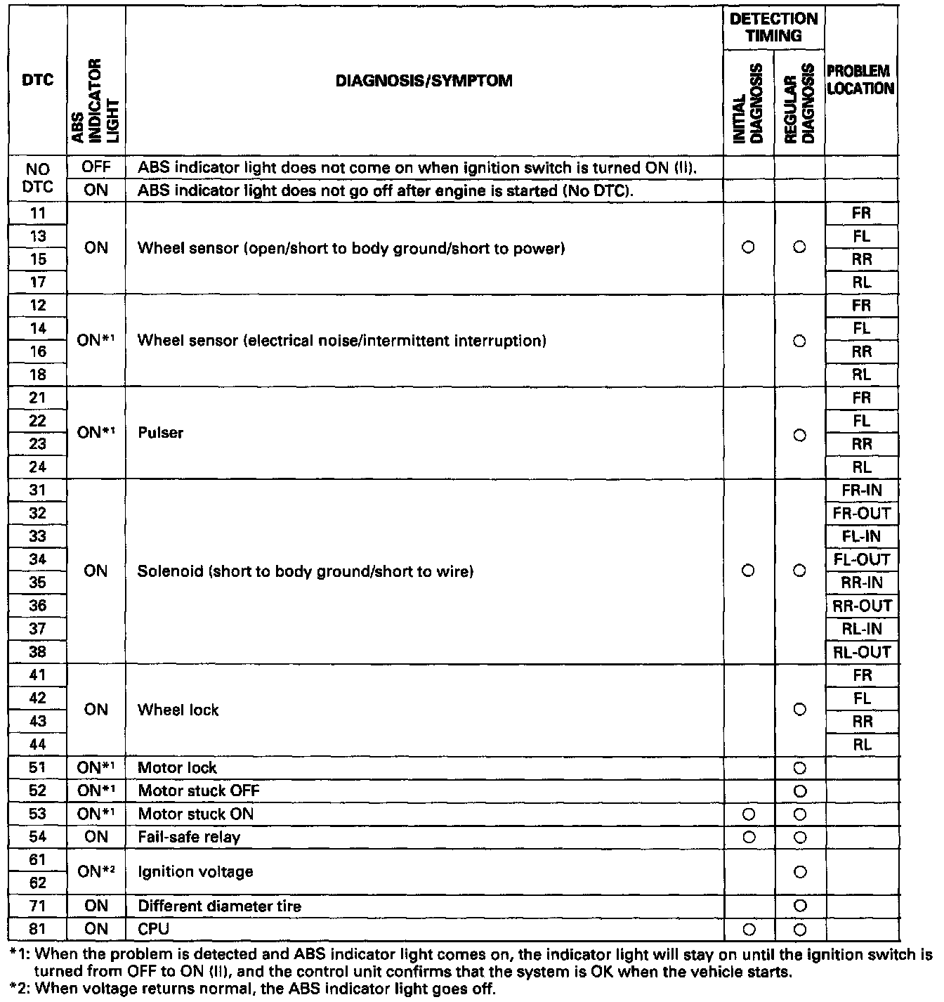 DTC List - Brakes and Traction Control