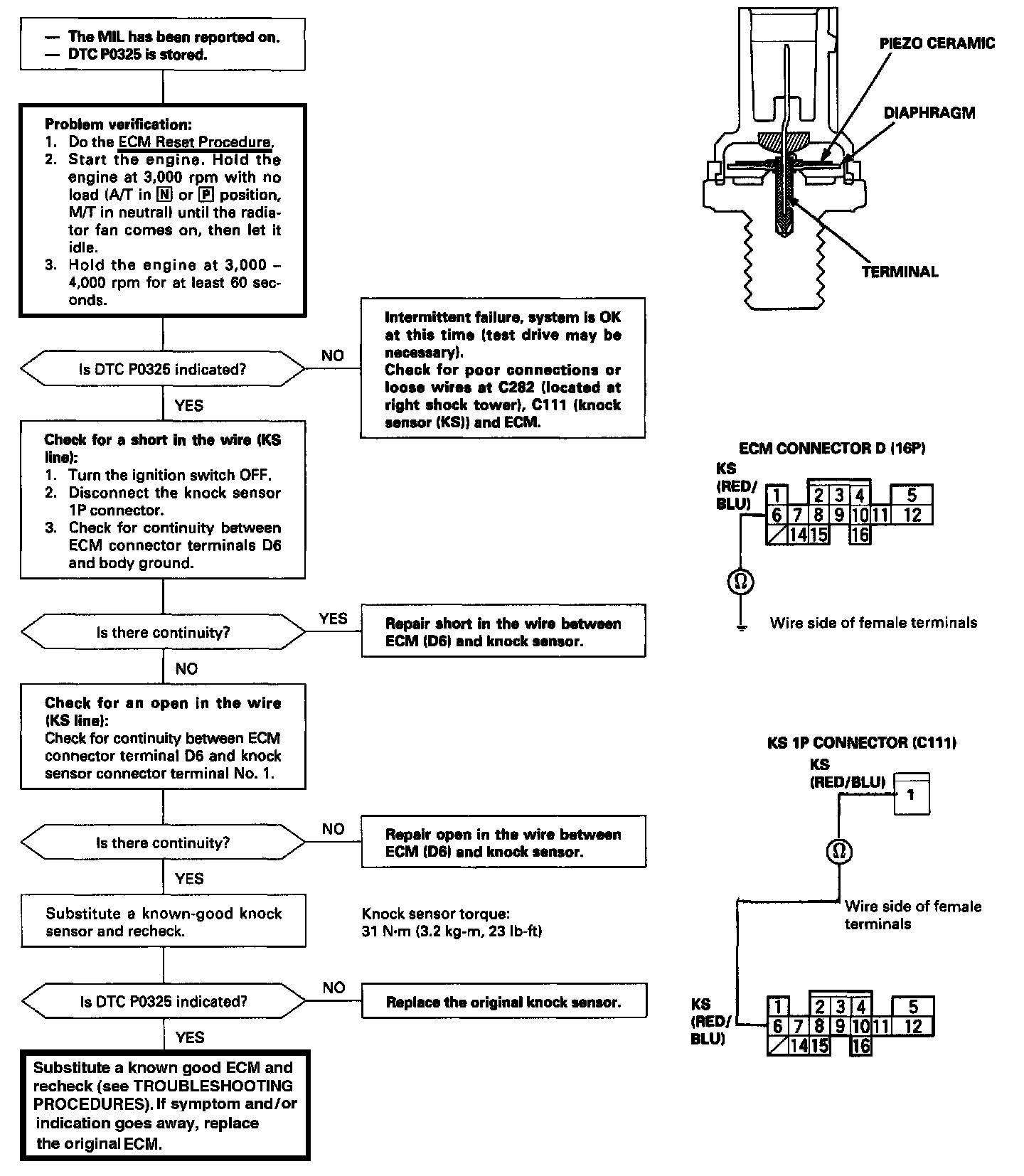 The scan tool indicates Diagnostic Trouble Code (DTC) P0325: