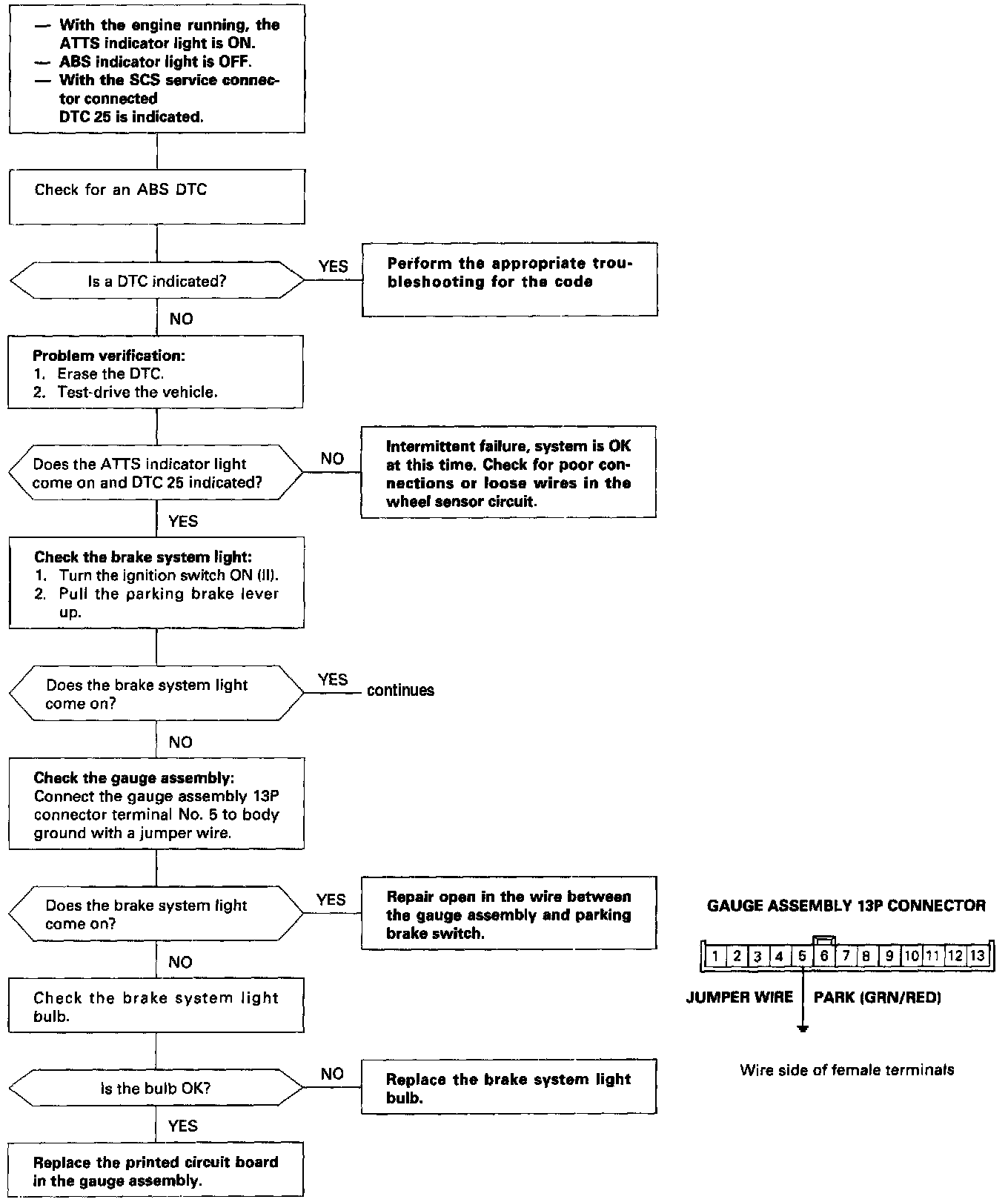 : When both the ATTS indicator light and ABS indicator light are ON, troubleshoot the ABS first.