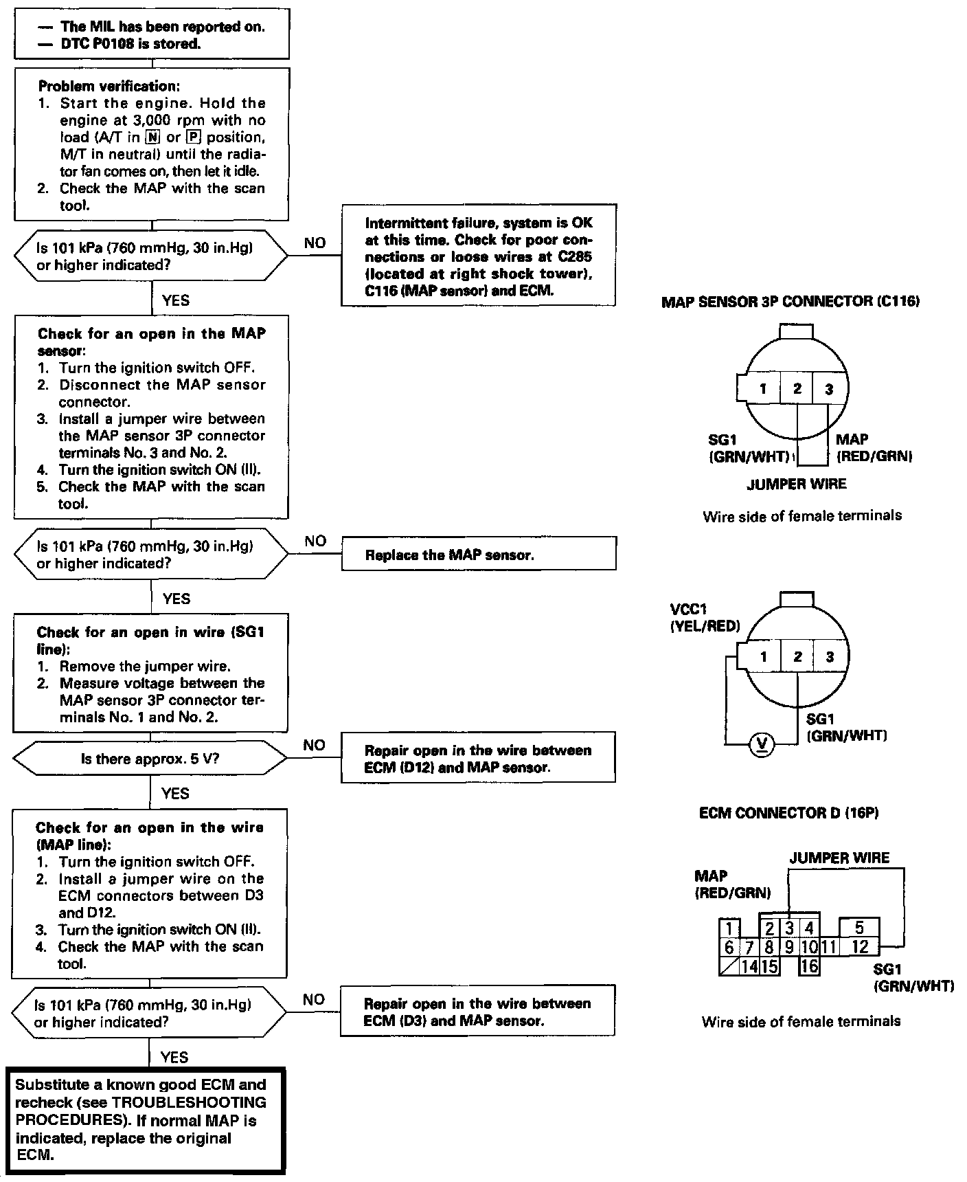 The scan tool indicates Diagnostic Trouble (DTC) P0108: