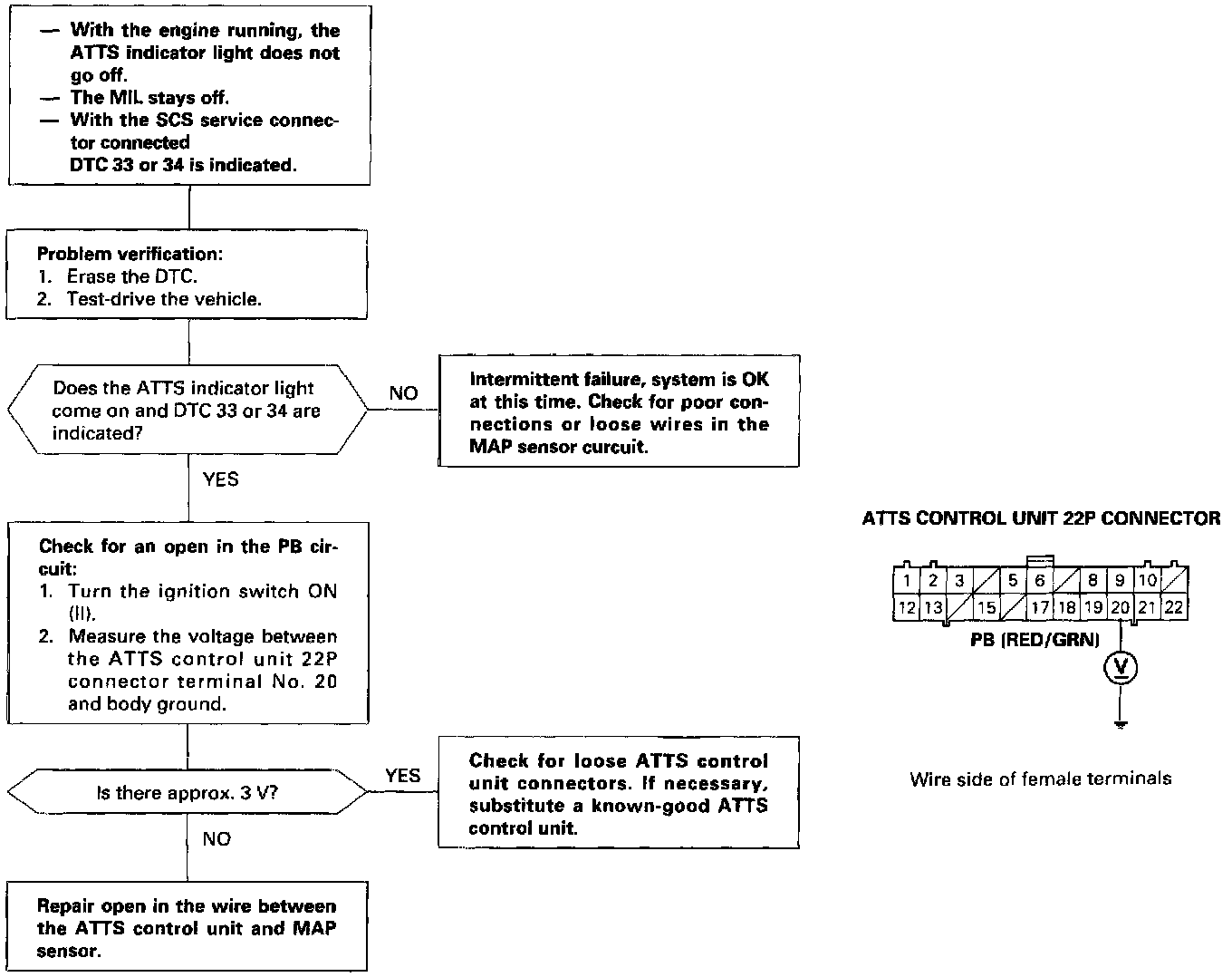 : When both the ATTS indicator light and MIL are ON, troubleshoot the PGM-FI system first.
