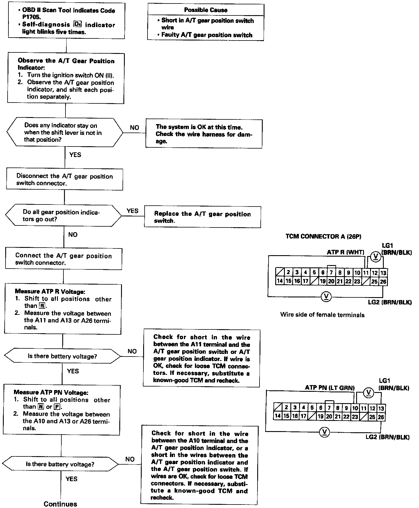 : Code 1705 (5) is caused when the TCM receives two gear position inputs at the same time.