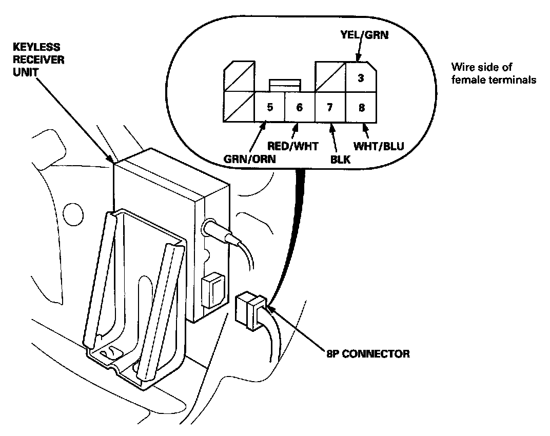 3. Disconnect the 8P connector from the keyless receiver unit.