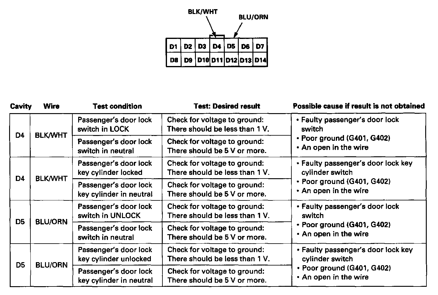 ^ If the terminals look OK, make the following input tests at the connector.
