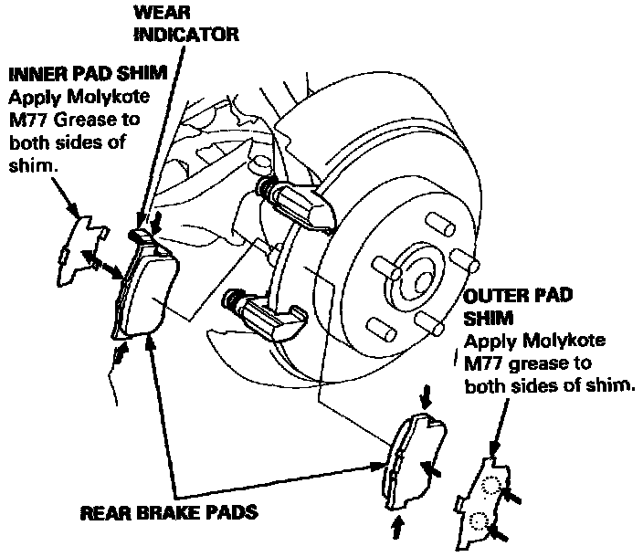 12. Apply Molykote M77 grease to both sides of the shims. Wipe excess grease off the shims.