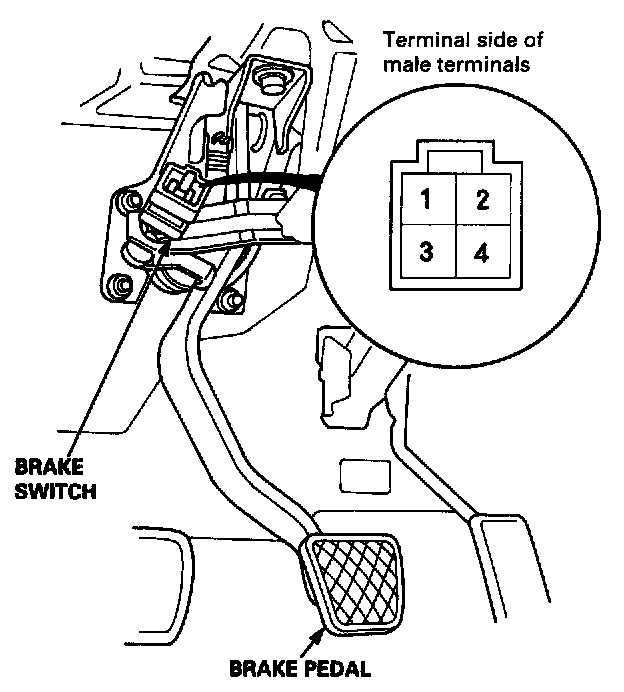 1. Disconnect the 4P connector from the switch.2. Remove the brake switch.