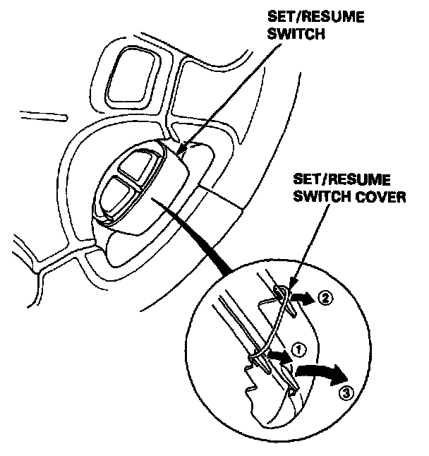 9. Carefully remove the set/resume switch cover by prying between the cover and the switch in the sequence shown.