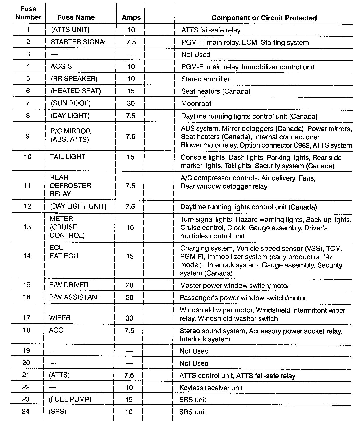 Fuse/Relay Information