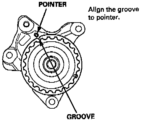 NOTE: Align the groove on the pulley edge to the pointer on the gear case while holding the rear balancer with 6 x 100 mm bolt, then install the gear case.