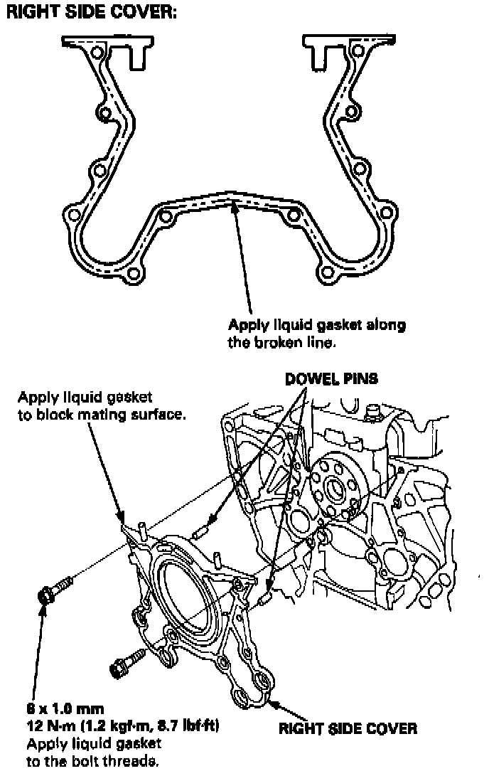 9. Apply liquid gasket to the block mating surface of the right side cover, then install it on the cylinder block.