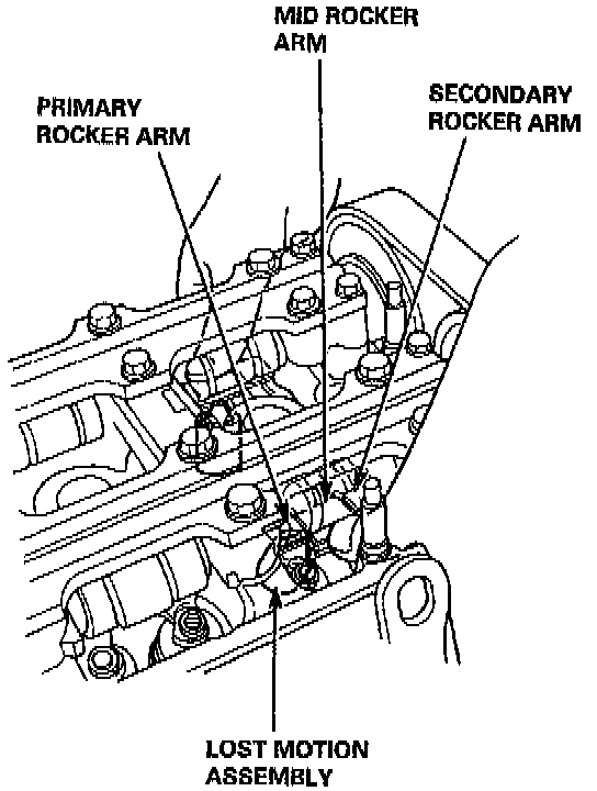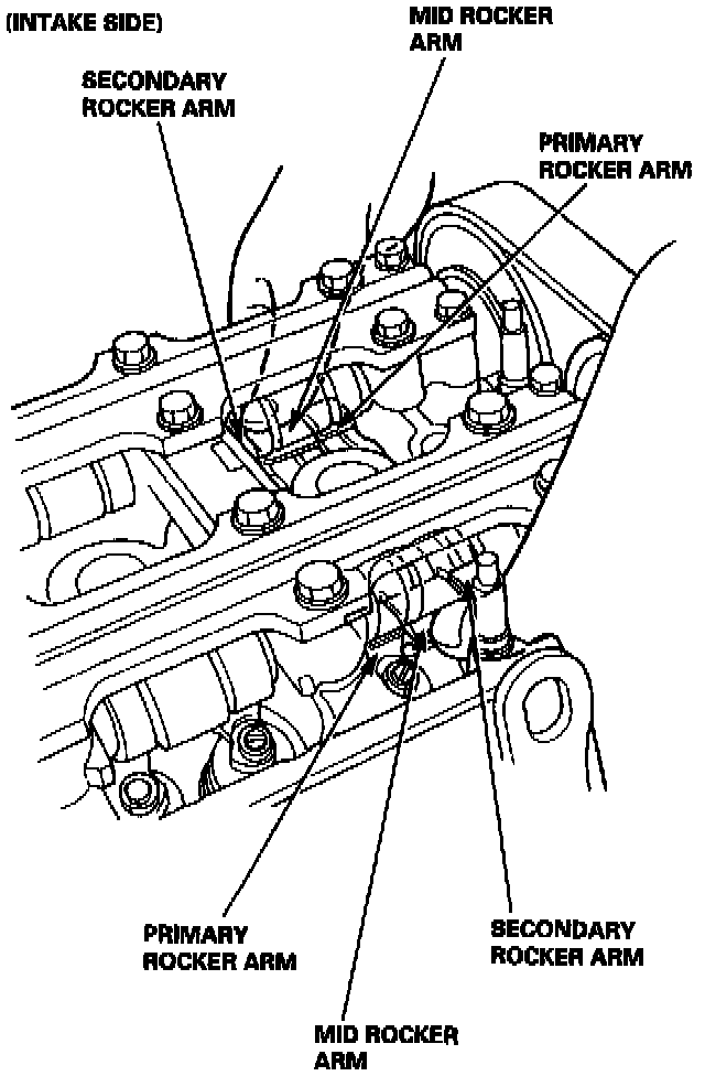 5. Make sure that the intake primary and secondary rocker arms are mechanically connected by the pistons and that the mid rocker arms do not move when pushed manually.