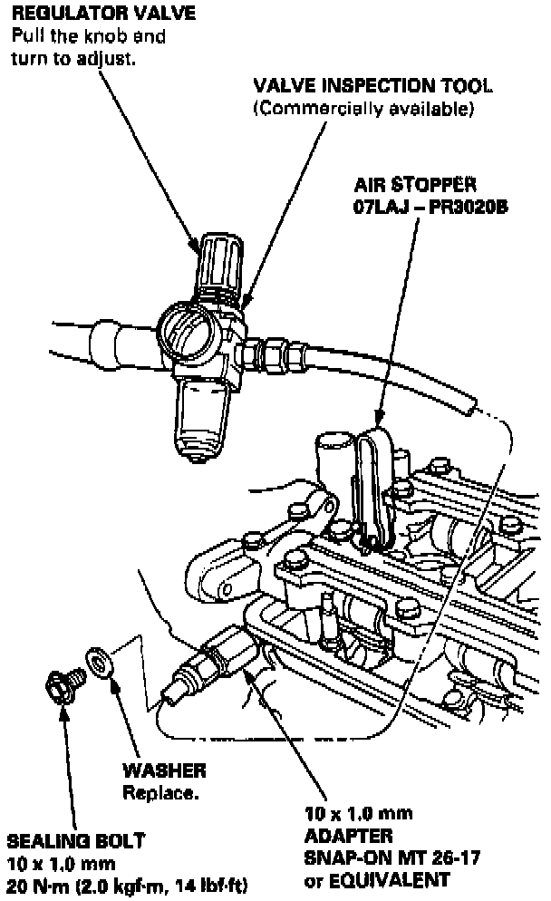 - Before using the Valve Inspection Tool, make sure that the air pressure gauge on the air compressor indicates over 400 kPa (4 kgf/cm2, 57 psi).