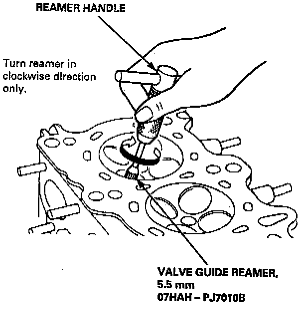 2. Rotate the reamer clockwise the full length of the valve guide bore.