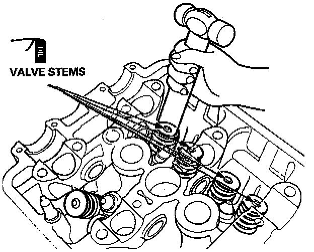 VALVES, VALVE SPRINGS AND VALVE SEALS INSTALLATION1. Coat the valve stems with engine oil. Install the valves in the valve guides.