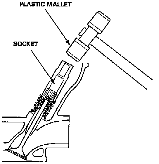 1. Using an appropriately-sized socket and plastic mallet, lightly tap the valve retainer to loosen the valve keepers before installing the valve spring compressor.