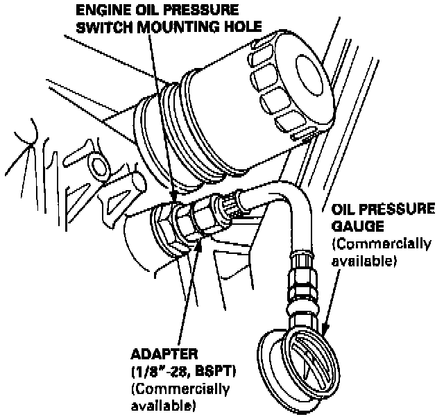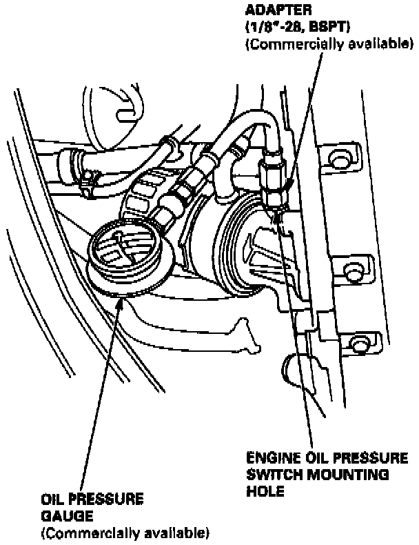2. Remove the engine oil pressure switch, and install an oil pressure gauge.
