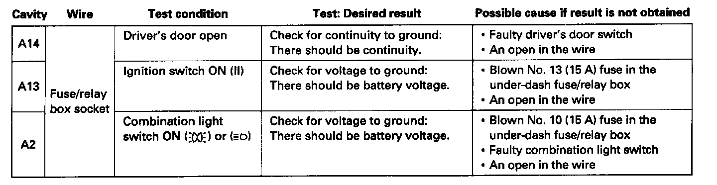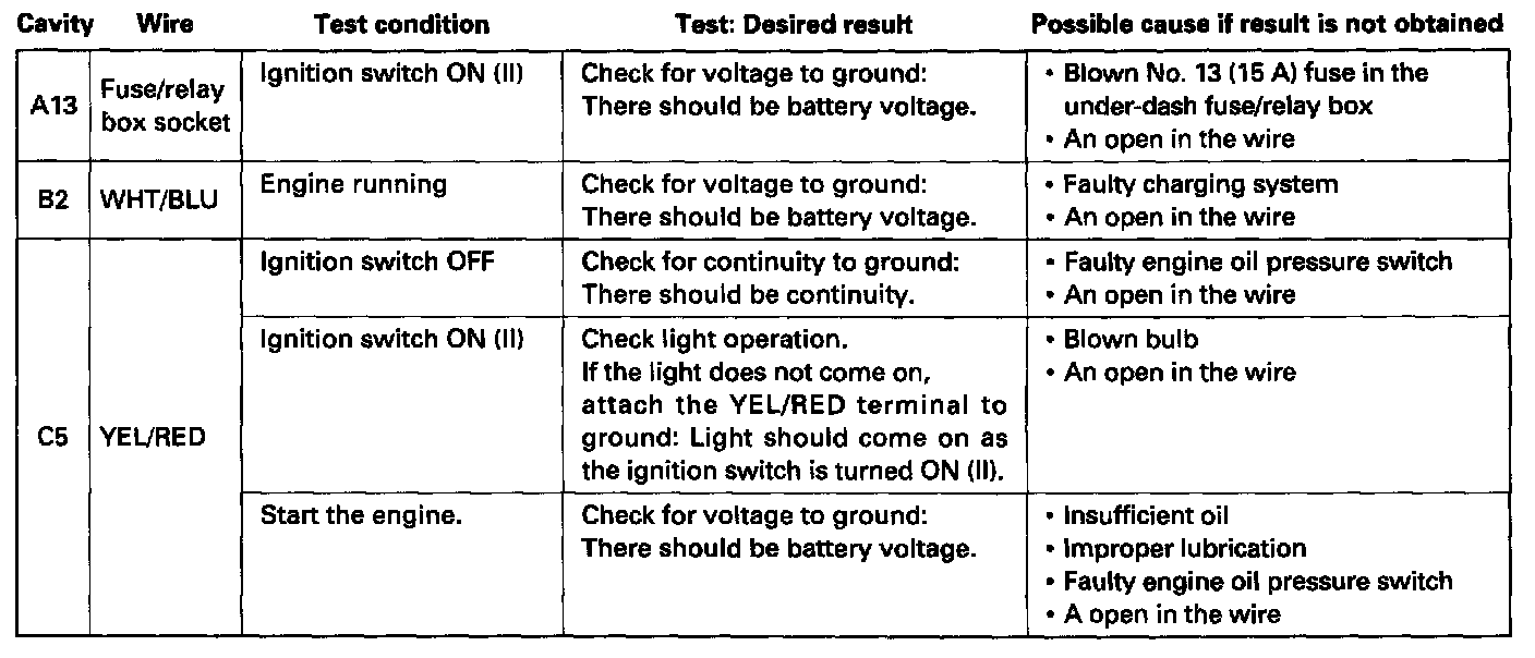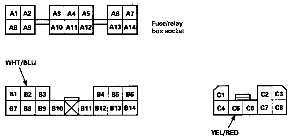 ^ If the terminals look OK, make the following input tests at the connector and the fuse/relay box socket.