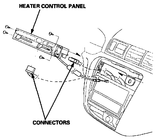 2. Remove the self-tapping screws, then pull the heater control panel. Disconnect the connectors, and remove the heater control panel.