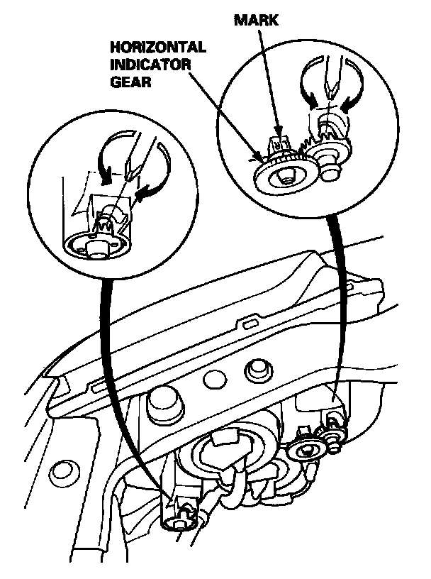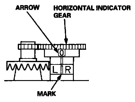 The mark on the horizontal indicator gear should be aligned with the mark on the horizontal indicator.